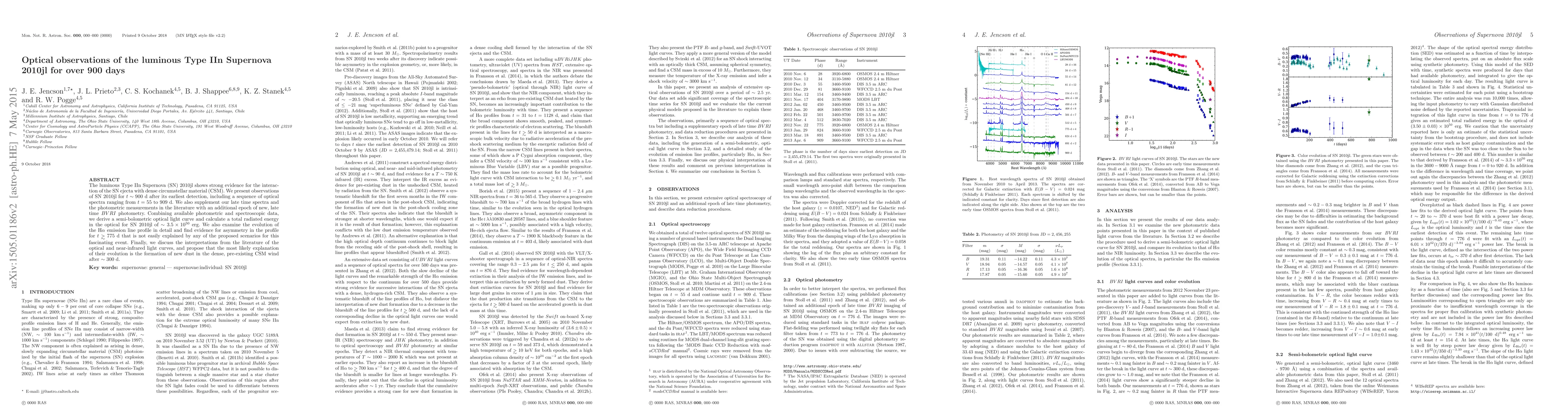 The luminous Type IIn Supernova (SN) 2010jl shows strong evidence for the interaction of the SN ejecta with dense circumstellar material (CSM). We present observations of SN 2010jl for $t \sim 900$ d after its earliest detection, including a sequence of optical spectra ranging from $t = 55$ to $909$ d. We also supplement our late time spectra and the photometric measurements in the literature with an additional epoch of new, late time $BVRI$ photometry. Combining available photometric and spectroscopic data, we derive a semi-bolometric optical light curve and calculate a total radiated energy in the optical for SN 2010jl of $\sim 3.5\times10^{50}$ erg. We also examine the evolution of the H$\alpha$ emission line profile in detail and find evidence for asymmetry in the profile for $t \gtrsim 775$ d that is not easily explained by any of the proposed scenarios for this fascinating event. Finally, we discuss the interpretations from the literature of the optical and near-infrared light curves, and propose that the most likely explanation of their evolution is the formation of new dust in the dense, pre-existing CSM wind after $\sim 300$ d.