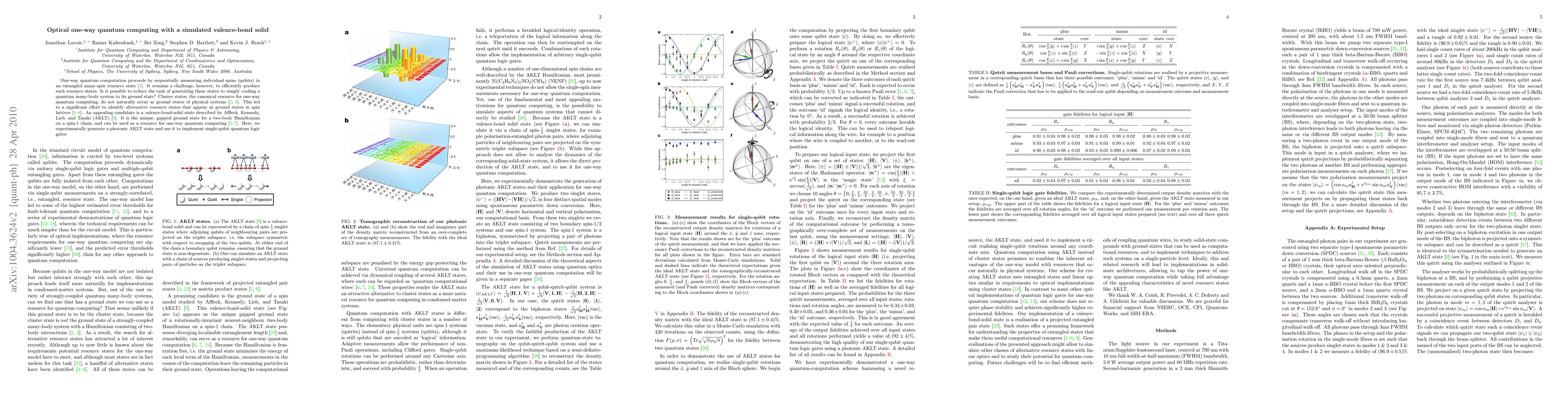 This paper demonstrates the generation of a photonic valence-bond-solid state, specifically an AKLT state, which serves as a resource for one-way quantum computing. The authors implement single-qubit quantum logic gates using this state, showing its potential in optical quantum computing.