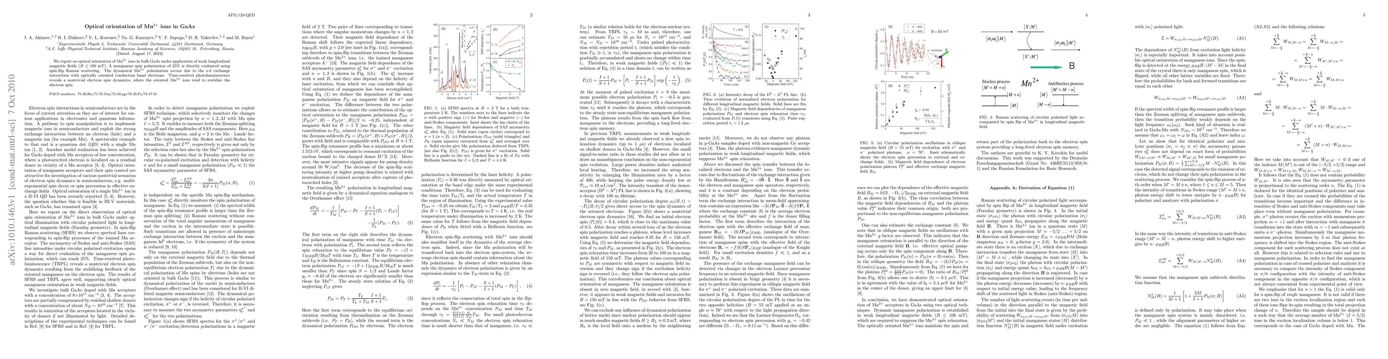 We report on optical orientation of Mn^2+ in bulk GaAs under application of weak longitudinal magnetic field (B <= 100 mT). The manganese spin polarization of 25% is directly evaluated using spin flip Raman scattering spectroscopy. The dynamical polarization of Mn^2+ occurs due to s-d exchange interaction with optically oriented conduction band electrons. Time-resolved photoluminescence uncovers nontrivial electron spin dynamics where the oriented Mn^2+ ions tend to stabilize the electron spin.