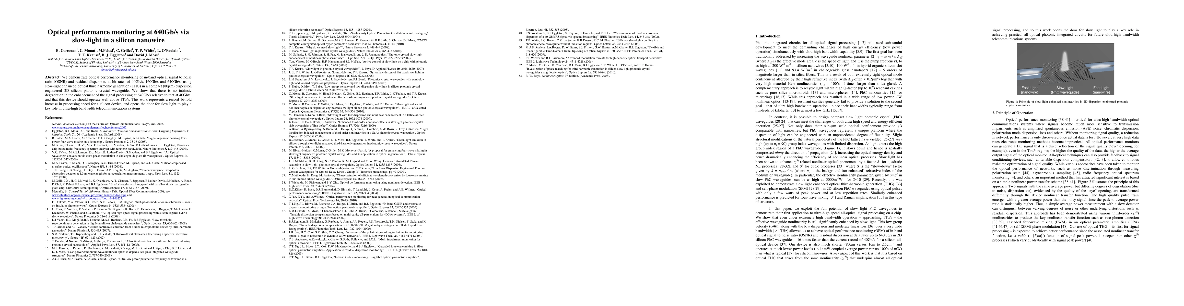 This paper demonstrates optical performance monitoring at 640Gb/s using slow-light enhanced third harmonic generation in a silicon nanowire, showing no degradation in performance compared to lower bit rates. The work represents a significant 16-fold increase in processing speed for silicon devices and suggests potential for ultra-high bandwidth telecommunications.