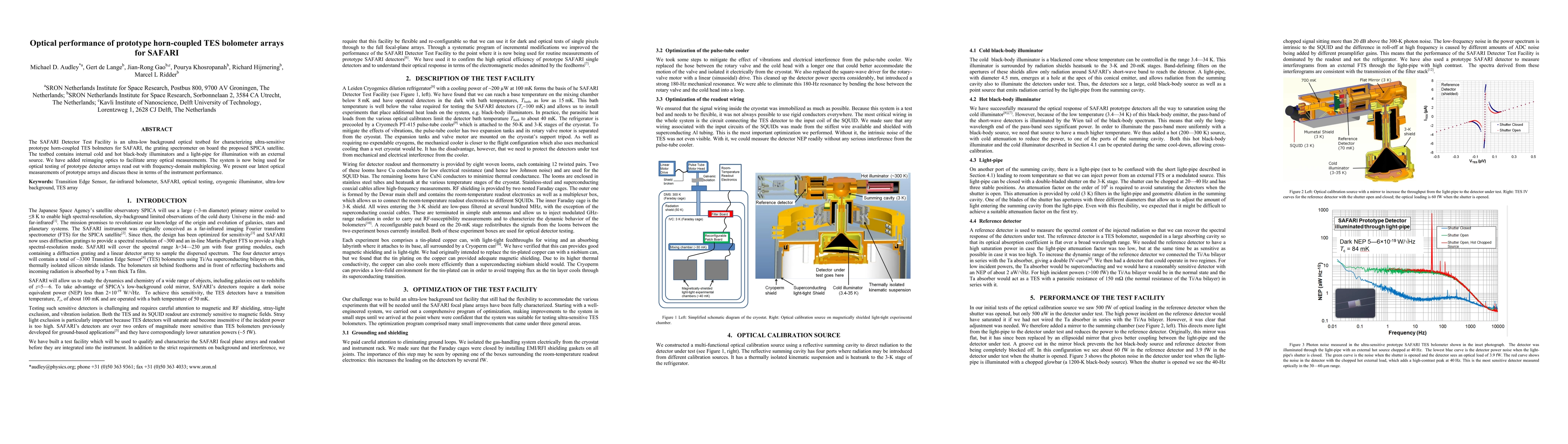 The SAFARI Detector Test Facility is an ultra-low background optical testbed for characterizing ultra-sensitive prototype horn-coupled TES bolmeters for SAFARI, the grating spectrometer on board the proposed SPICA satellite. The testbed contains internal cold and hot black-body illuminators and a light-pipe for illumination with an external source. We have added reimaging optics to facilitate array optical measurements. The system is now being used for optical testing of prototype detector arrays read out with frequency-domain multiplexing. We present our latest optical measurements of prototype arrays and discuss these in terms of the instrument performance.