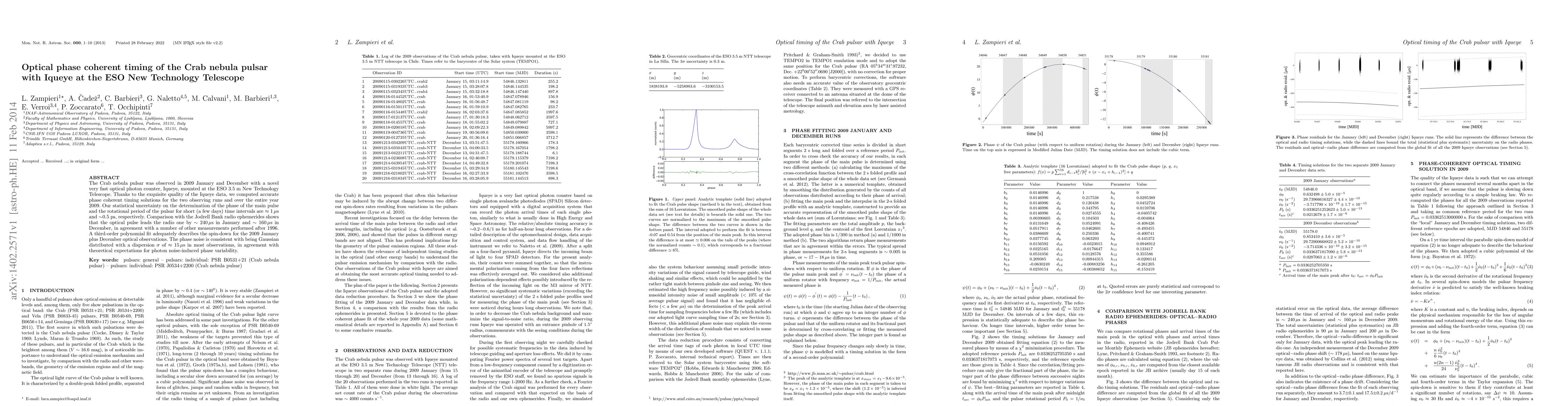 Researchers used a novel photon counter to measure the timing of the Crab nebula pulsar with high accuracy, achieving errors of around 1 microsecond and 0.5 picoseconds over short time intervals. The results confirm previous findings on the optical pulse leading the radio pulse by a small amount.