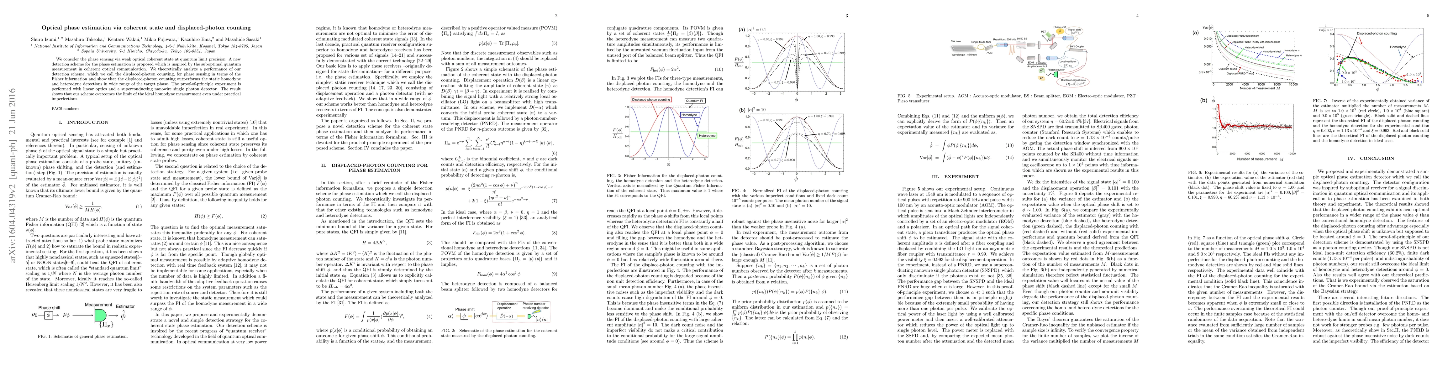 This research proposes a novel "displaced-photon counting" scheme for optical phase estimation, outperforming static homodyne and heterodyne detections. The method leverages quantum measurement principles and is demonstrated experimentally with linear optics and a superconducting nanowire single photon detector, surpassing ideal homodyne measurement limitations.
