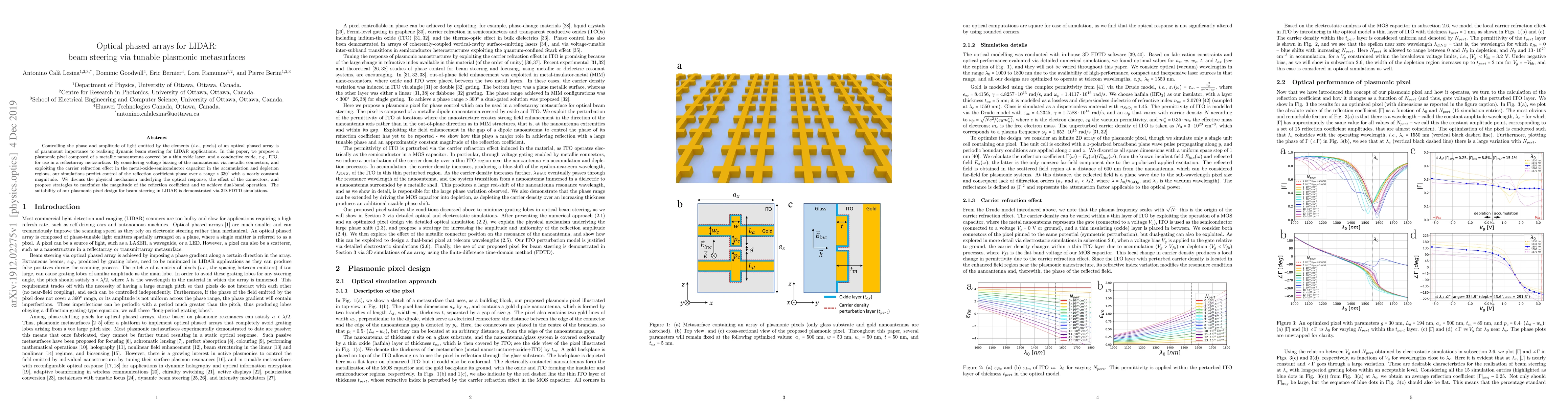 This paper proposes a tunable plasmonic metasurface for LIDAR applications that uses metallic nanoantennas with voltage-biased connectors to achieve dynamic beam steering. The design allows for phase control over a range of $>330^{\circ}$ with a stable reflection magnitude, demonstrated through 3D-FDTD simulations.