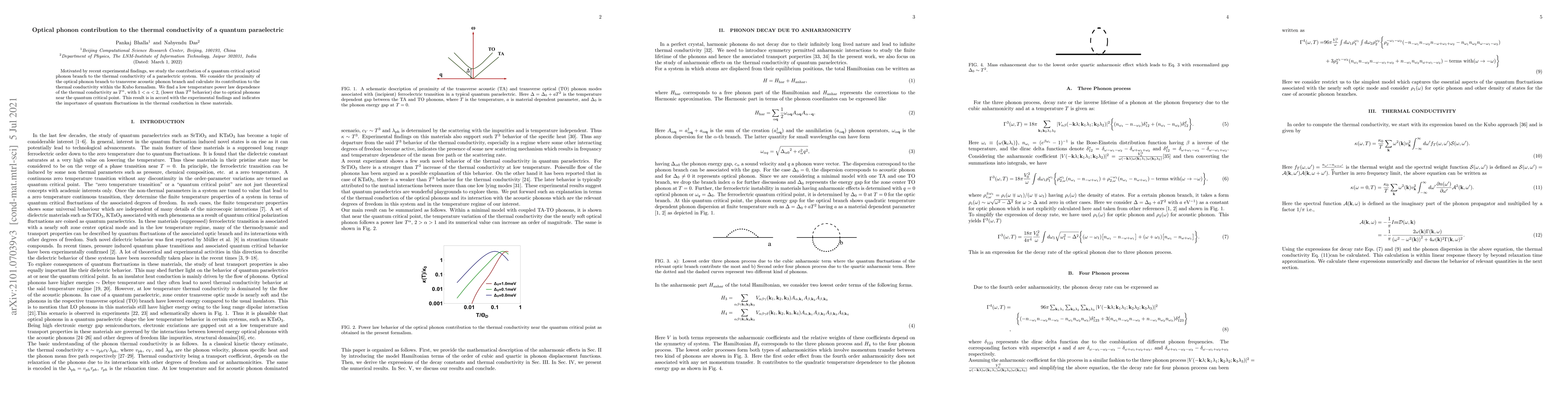 This study investigates the thermal conductivity of a paraelectric system, focusing on the contribution of an optical phonon branch near the quantum critical point. Using the Kubo formalism, it finds a low-temperature thermal conductivity dependence of $T^{\alpha}$ with $1 < \alpha < 2$, highlighting the role of quantum fluctuations in thermal conduction.