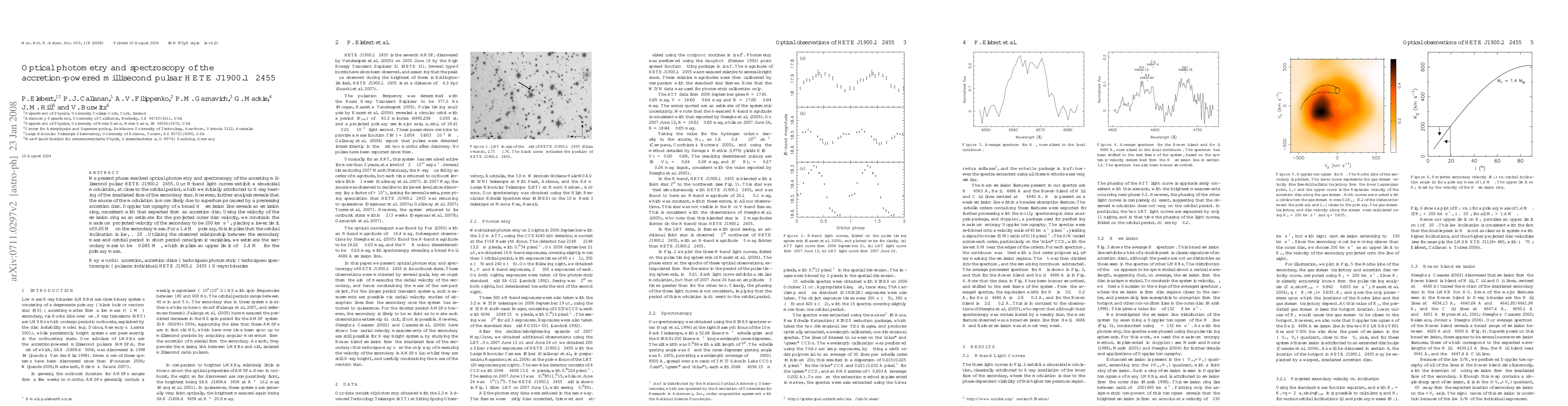 Researchers studied the accretion-powered millisecond pulsar HETE J1900.1-2455, finding that its optical light curves show a sinusoidal modulation likely caused by superhumps from a precessing accretion disc, leading to an estimated lower limit of 0.05 Msun on the secondary mass.