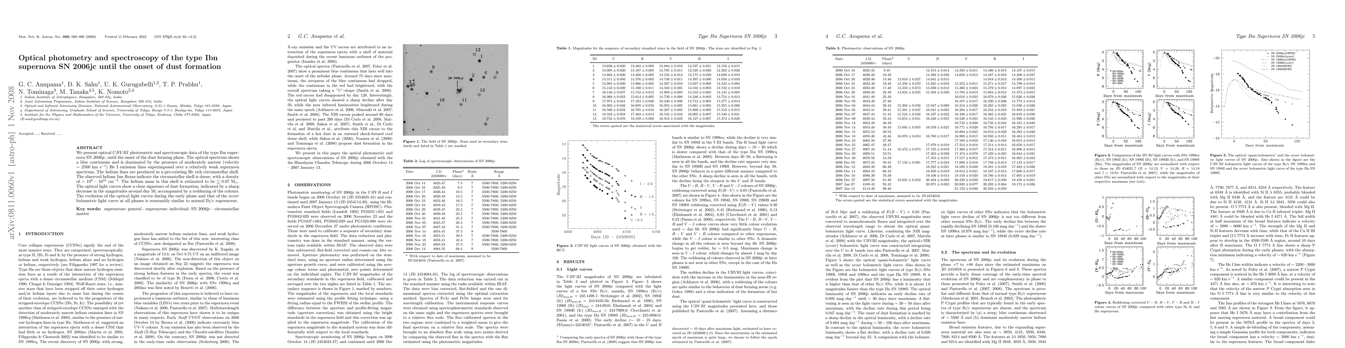 We present optical UBVRI photometric and spectroscopic data of the type Ibn supernova SN 2006jc, until the onset of the dust forming phase. The optical spectrum shows a blue continuum and is dominated by the presence of moderately narrow (velocity ~2500 km/s) He I emission lines superimposed over a relatively weak supernova spectrum. The helium lines are produced in a pre-existing He rich circumstellar shell. The observed helium line fluxes indicate the circumstellar shell is dense, with a density of ~10^9 - 10^{10} cm^{-3}. The helium mass in this shell is estimated to be <~0.07 Msun. The optical light curves show a clear signature of dust formation, indicated by a sharp decrease in the magnitudes around day 50, accompanied by a reddening of the colours. The evolution of the optical light curves during the early phase and that of the uvoir bolometric light curve at all phases is reasonably similar to normal Ib/c supernovae.