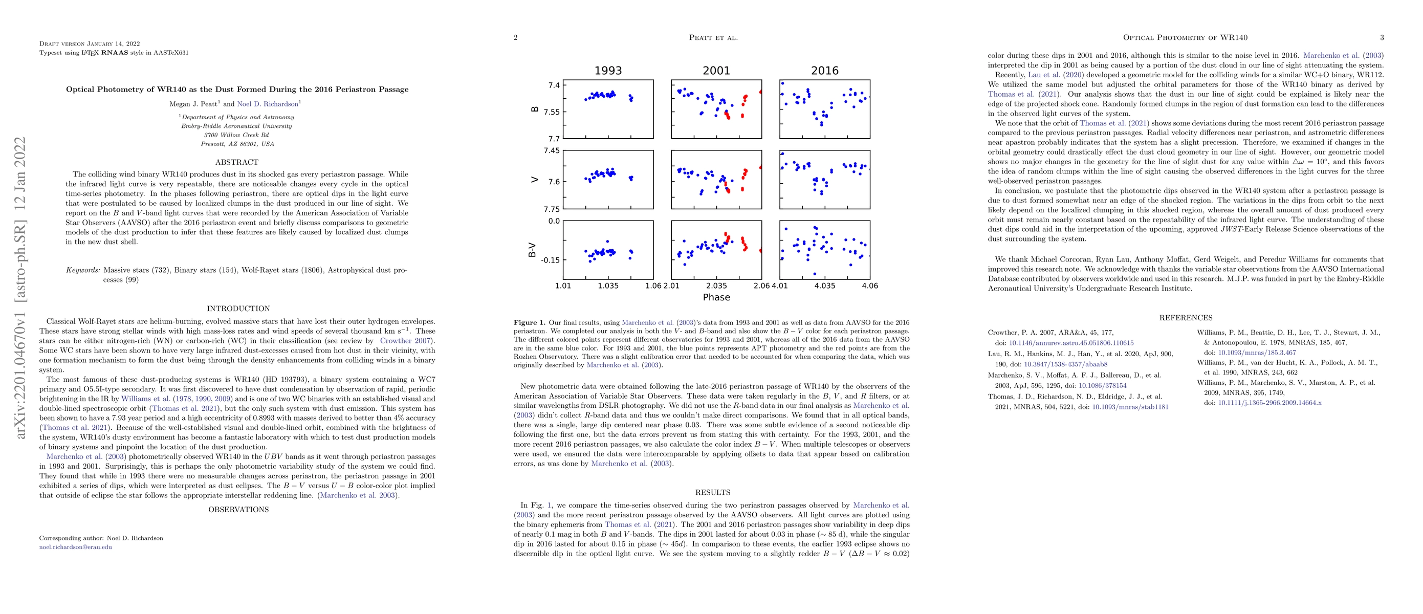 The study of WR140, a colliding wind binary, reveals optical dips in its light curve following periastron passage, likely caused by localized dust clumps in the newly formed dust shell.