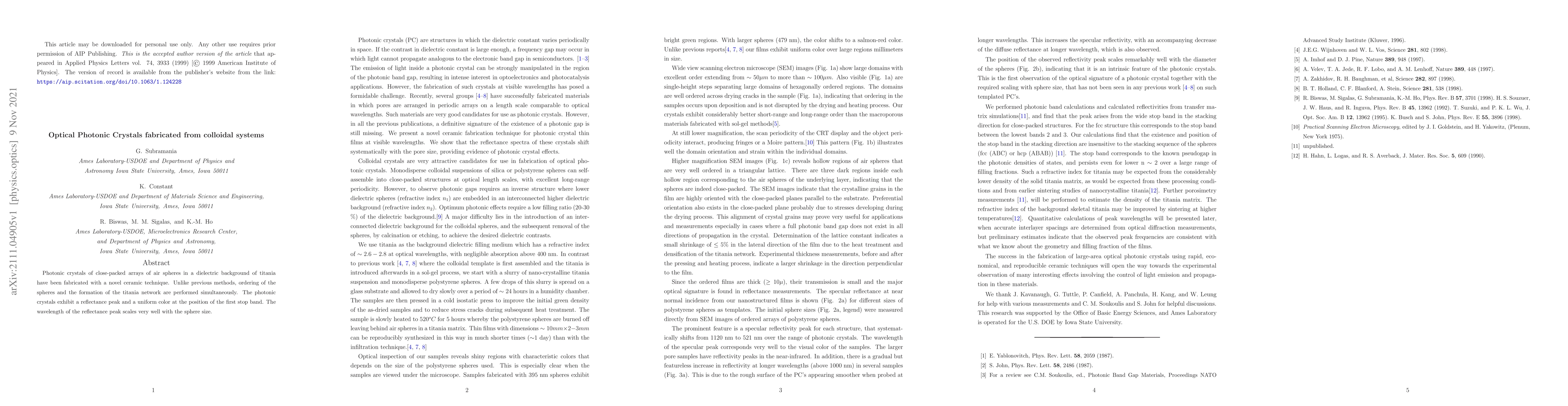 Researchers created photonic crystals from air spheres in a dielectric material using a novel ceramic technique, achieving uniform color and reflectance peak at specific wavelengths.