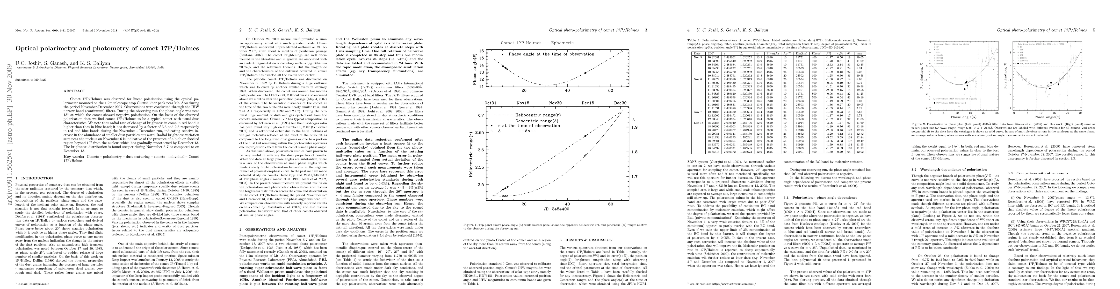 Comet 17P/Holmes showed typical comet behavior with dust characteristics, and its brightness varied in different colors during the November-December observing run.