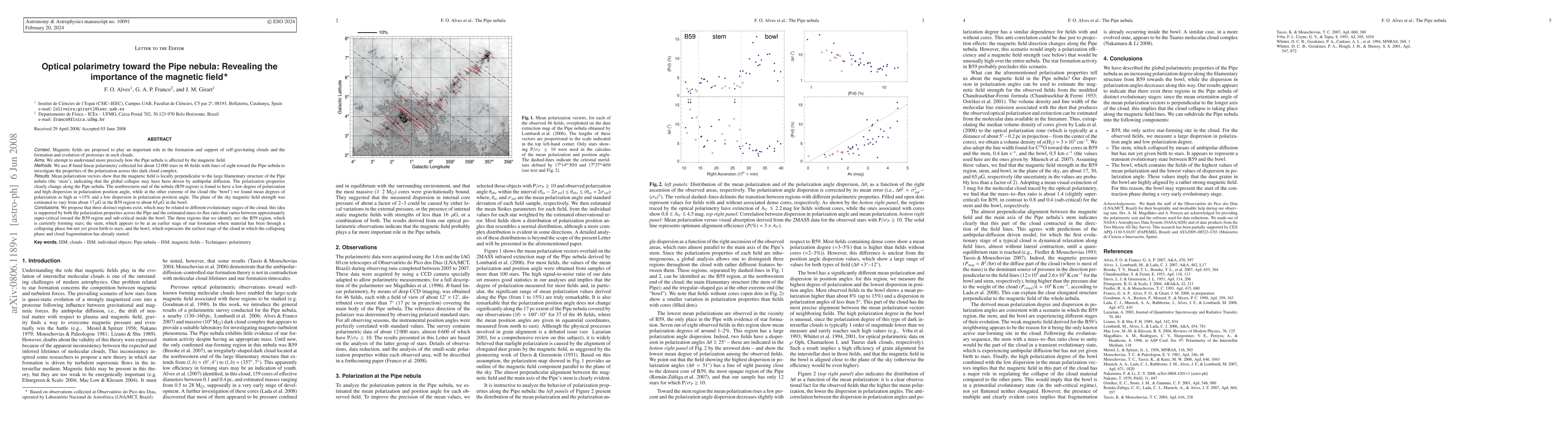 This study uses optical polarimetry to analyze the magnetic field's role in the Pipe nebula, revealing distinct regions with different polarization properties and magnetic field strengths, suggesting varying evolutionary stages of star formation. The findings indicate a complex interplay between magnetic fields and the nebula's structure.