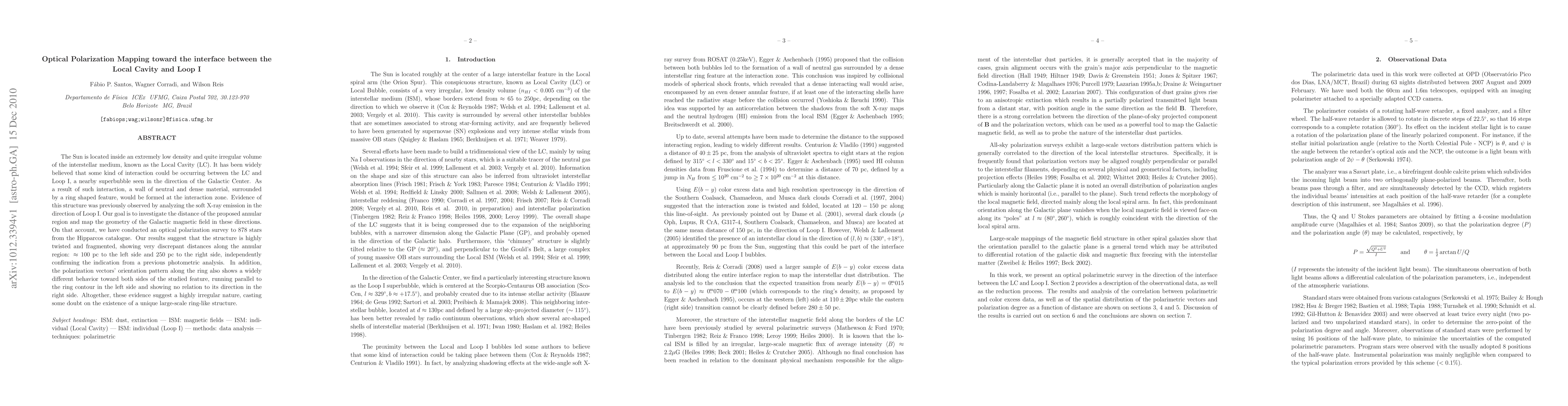 The Sun is located inside an extremely low density and quite irregular volume of the interstellar medium, known as the Local Cavity (LC). It has been widely believed that some kind of interaction could be occurring between the LC and Loop I, a nearby superbubble seen in the direction of the Galactic Center. As a result of such interaction, a wall of neutral and dense material, surrounded by a ring shaped feature, would be formed at the interaction zone. Evidence of this structure was previously observed by analyzing the soft X-ray emission in the direction of Loop I. Our goal is to investigate the distance of the proposed annular region and map the geometry of the Galactic magnetic field in these directions. On that account, we have conducted an optical polarization survey to 878 stars from the Hipparcos catalogue. Our results suggest that the structure is highly twisted and fragmented, showing very discrepant distances along the annular region: approximately 100 pc to the left side and 250 pc to the right side, independently confirming the indication from a previous photometric analysis. In addition, the polarization vectors' orientation pattern along the ring also shows a widely different behavior toward both sides of the studied feature, running parallel to the ring contour in the left side and showing no relation to its direction in the right side. Altogether, these evidence suggest a highly irregular nature, casting some doubt on the existence of a unique large-scale ring-like structure.