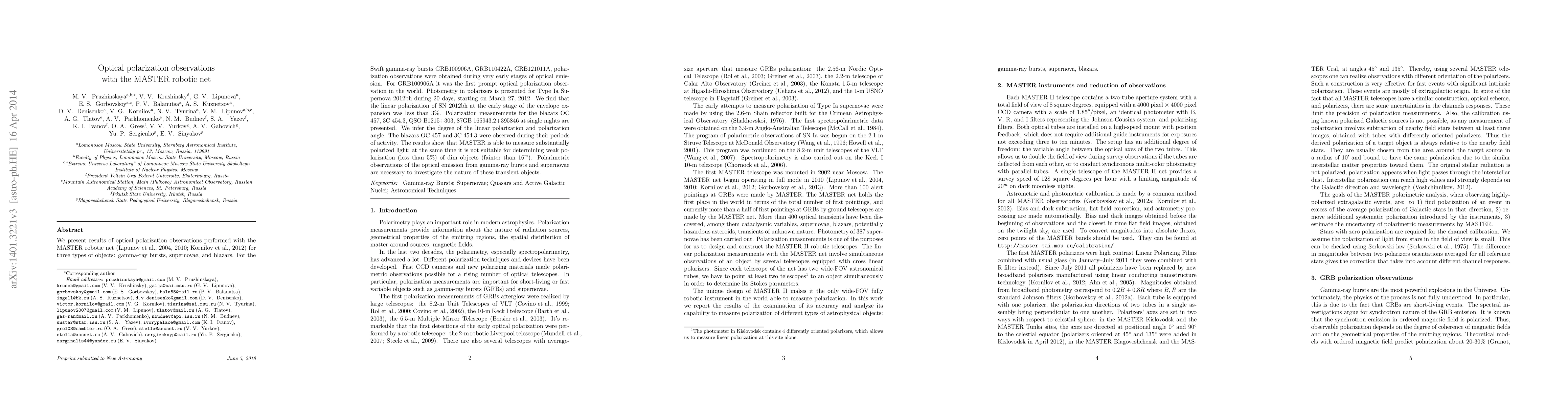 This research paper presents optical polarization observations of gamma-ray bursts, supernovae, and blazars using the MASTER robotic net, revealing early-stage polarization of some events and demonstrating the telescope's capabilities for measuring strong polarization.