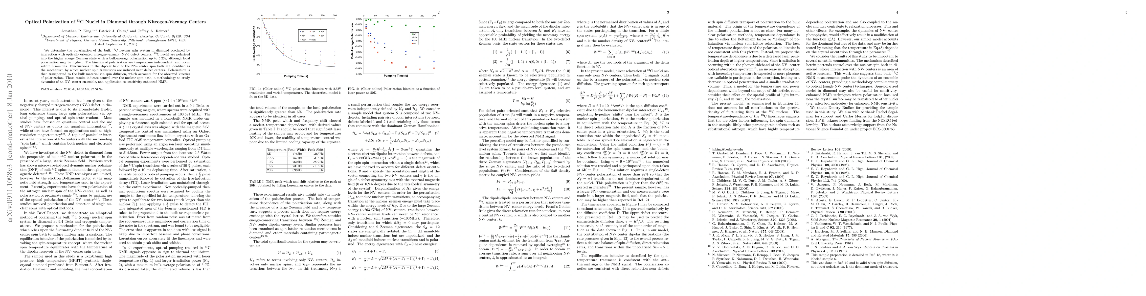 Researchers found that nitrogen-vacancy centers in diamond can polarize 13C nuclei, increasing their polarization up to 5.2%, through spin diffusion and controlled nuclear spin bath.