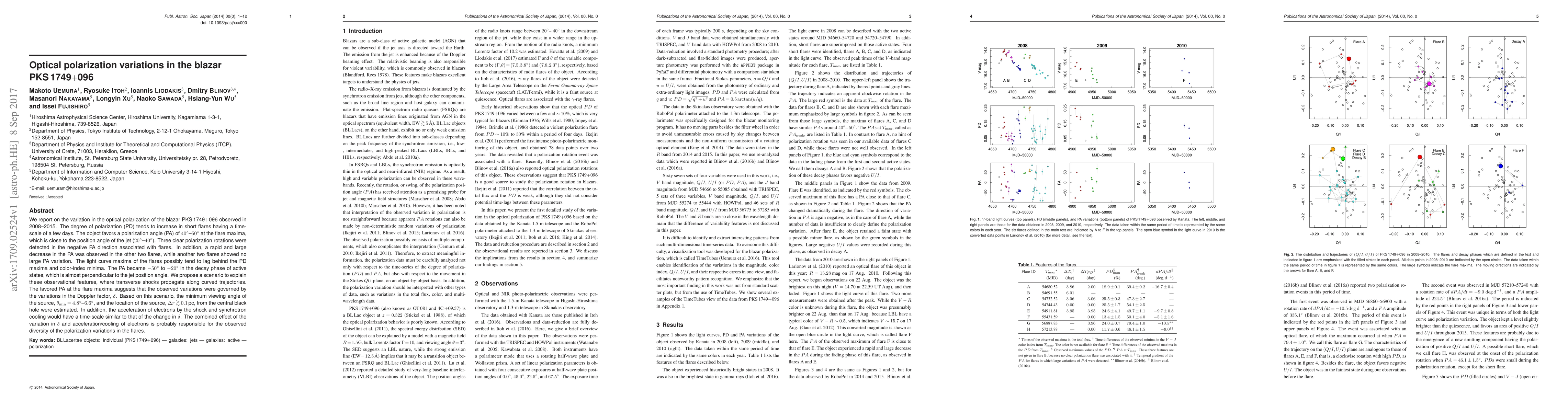 Research on blazar PKS 1749+096 reveals that optical polarization varies in short flares, favoring a specific angle close to the jet's position angle, with some flares showing significant rotations or lagging light curve maxima.