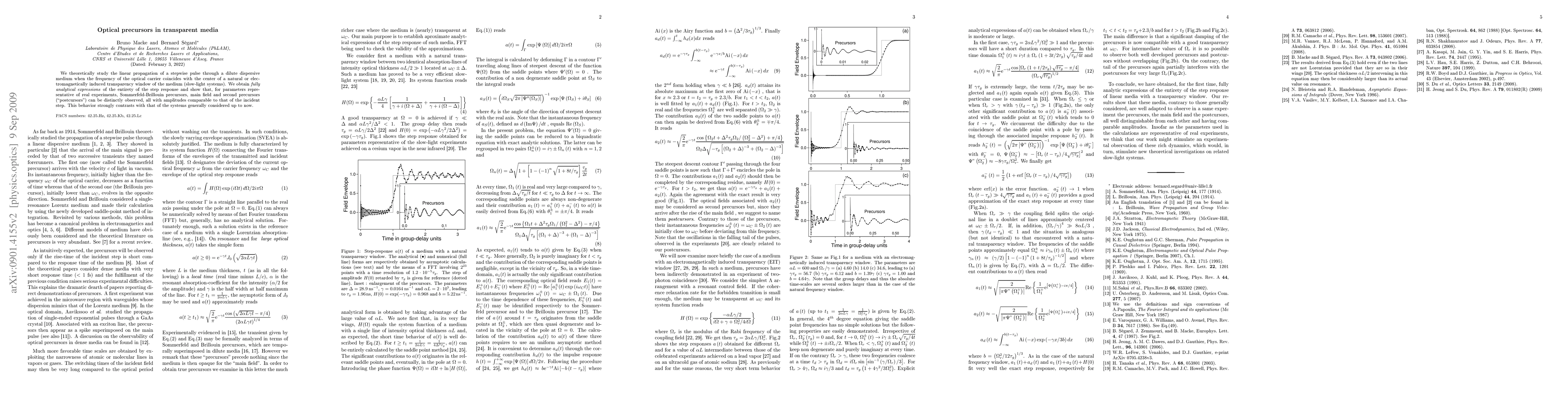 We theoretically study the linear propagation of a stepwise pulse through a dilute dispersive medium when the frequency of the optical carrier coincides with the center of a natural or electromagnetically induced transparency window of the medium (slow-light systems). We obtain fully analytical expressions of the entirety of the step response and show that, for parameters representative of real experiments, Sommerfeld-Brillouin precursors, main field and second precursors "postcursors" can be distinctly observed, all with amplitudes comparable to that of the incident step. This behavior strongly contrasts with that of the systems generally considered up to now.