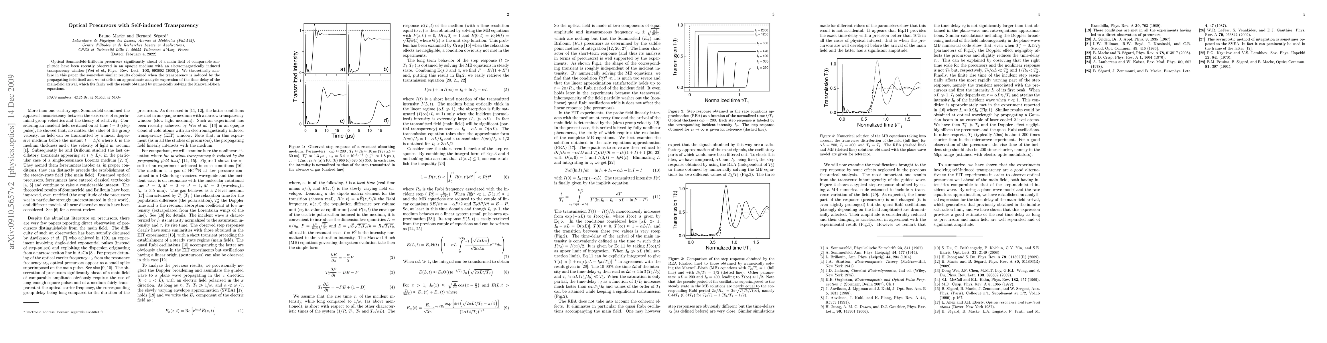 Optical Sommerfeld-Brillouin precursors significantly ahead of a main field of comparable amplitude have been recently observed in an opaque medium with an electromagnetically induced transparency window [Wei et al., Phys. Rev. Lett. 103, 093602 (2009)]. We theoretically analyze in this paper the somewhat similar results obtained when the transparency is induced by the propagating field itself and we establish an approximate analytic expression of the time-delay of the main-field arrival, which fits fairly well the result obtained by numerically solving the Maxwell-Bloch equations.
