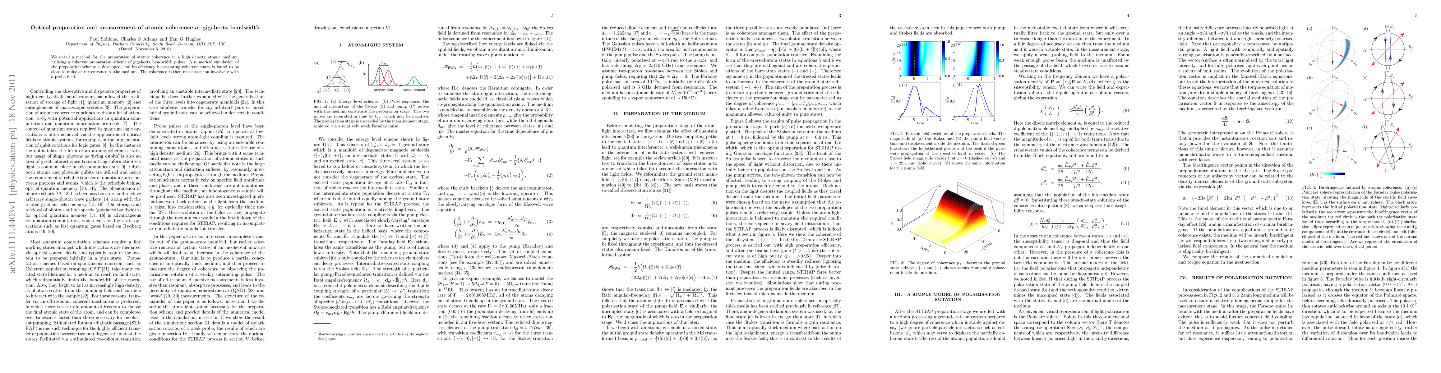 This paper presents a method for generating atomic coherence in high-density medium using gigahertz bandwidth pulses, achieving near-unity efficiency in preparation, followed by non-invasive measurement of the coherence with a probe field.