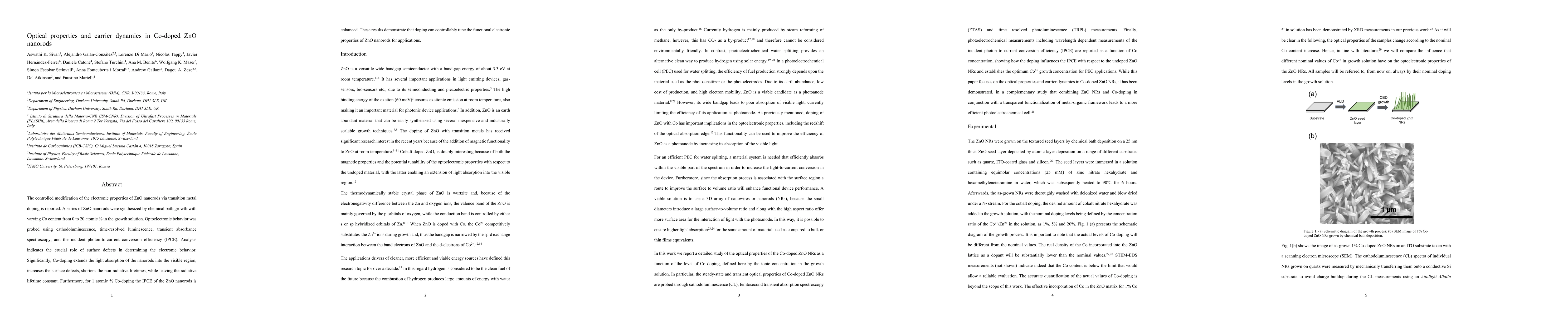 This study investigates the optical properties and carrier dynamics of Co-doped ZnO nanorods synthesized via chemical bath growth. The research reveals that Co-doping extends light absorption into the visible region, increases surface defects, and enhances the incident photon-to-current conversion efficiency, indicating its potential for tunable electronic applications.