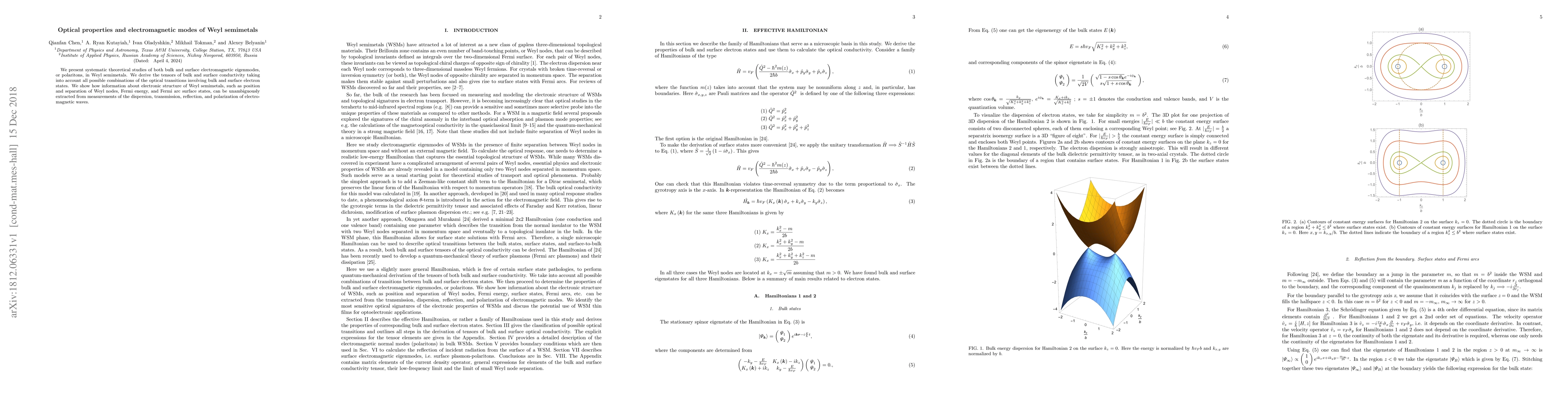 This paper systematically explores the electromagnetic eigenmodes, or polaritons, in Weyl semimetals, deriving conductivity tensors and demonstrating how optical measurements reveal details of their electronic structure, including Weyl node positions and Fermi arc states.