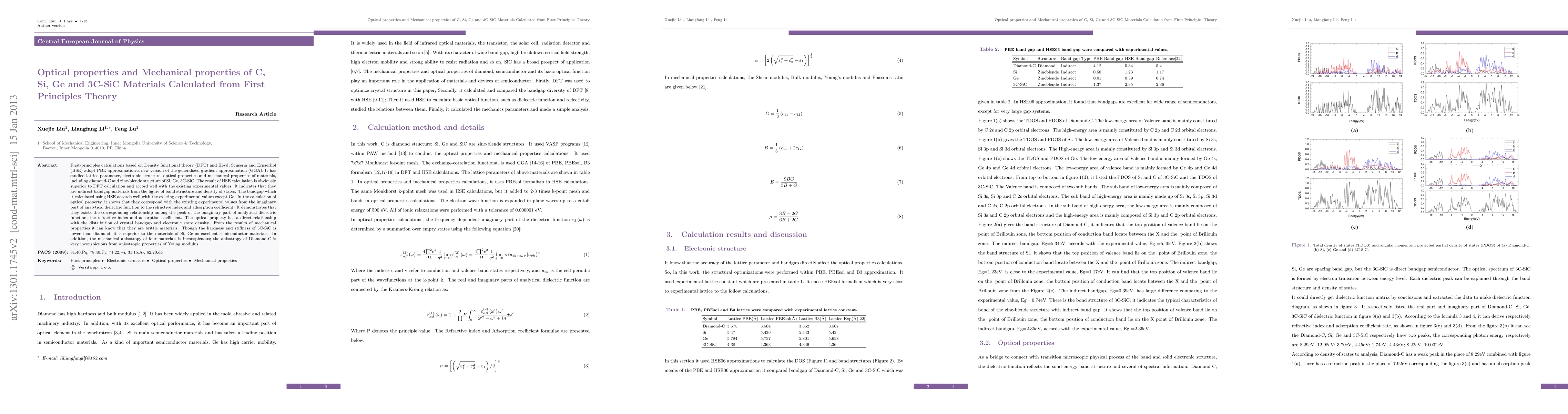 This paper uses first-principles calculations based on Density functional theory (DFT) and HSE to study the optical and mechanical properties of C, Si, Ge, and 3C-SiC. The HSE method provides superior results compared to DFT, accurately predicting bandgaps, optical properties, and mechanical characteristics, confirming these materials as brittle semiconductors with 3C-SiC showing superior mechanical properties to Si and Ge.