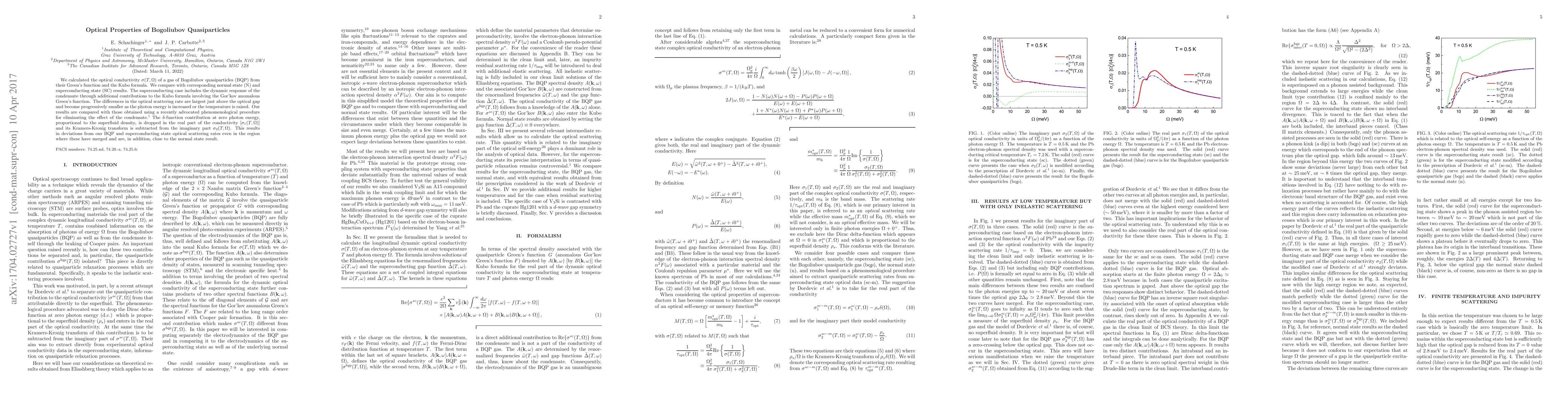 Researchers calculated optical conductivity of Bogoliubov quasiparticles in superconducting states, finding differences from normal state results that decrease with increasing photon energy or temperature.