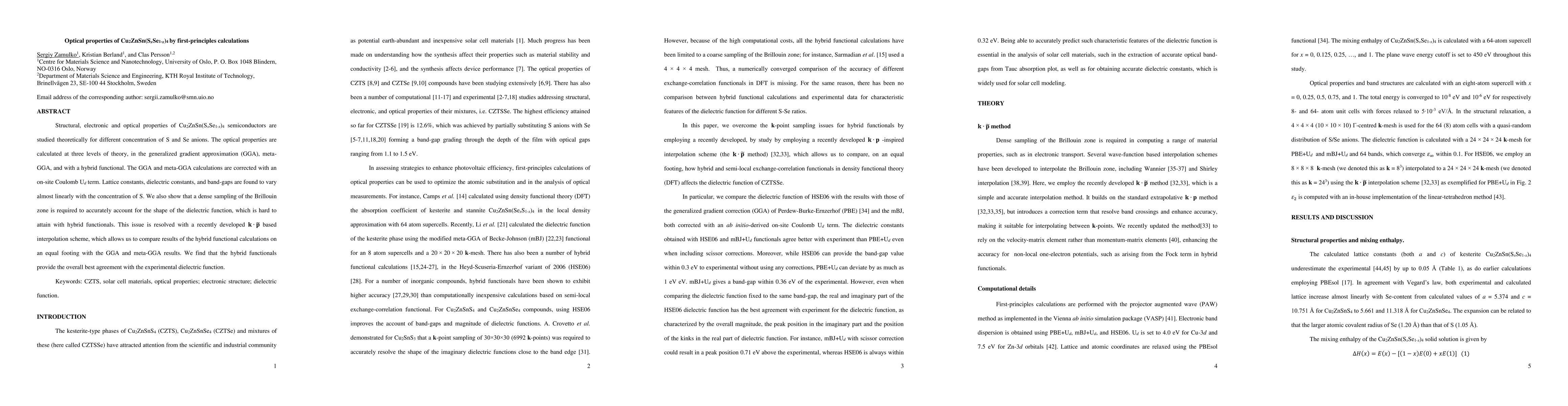 This paper investigates the optical properties of Cu2ZnSn(SxSe1-x)4 semiconductors using first-principles calculations, finding variations in lattice constants, dielectric constants, and band-gaps with S concentration. The hybrid functionals show the best agreement with experimental data, though dense Brillouin zone sampling is crucial for accurate dielectric function modeling.