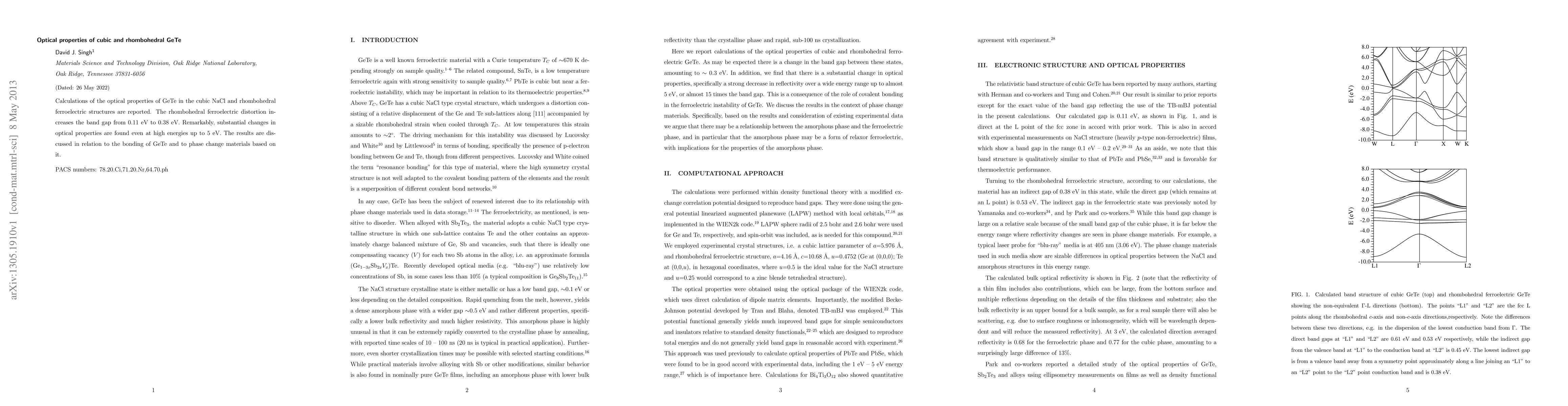 Calculations show that introducing a rhombohedral ferroelectric distortion in GeTe increases its band gap from 0.11 to 0.38 eV, with significant changes in optical properties at high energies.