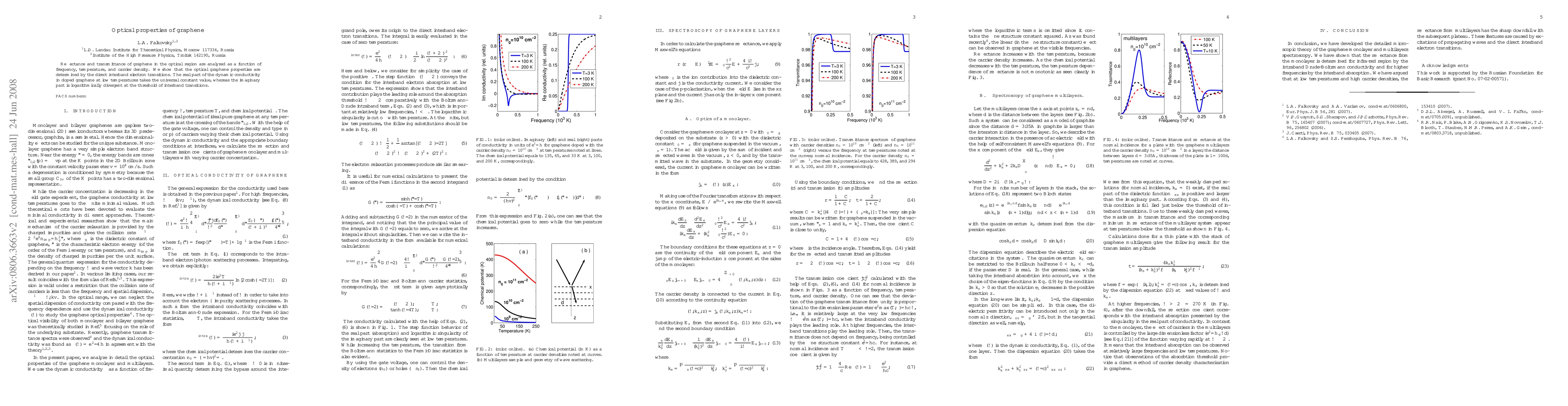 Reflectance and transmittance of graphene in the optical region are analyzed as a function of frequency, temperature, and carrier density. We show that the optical graphene properties are determined by the direct interband electron transitions. The real part of the dynamic conductivity in doped graphene at low temperatures takes the universal constant value, whereas the imaginary part is logarithmically divergent at the threshold of interband transitions.