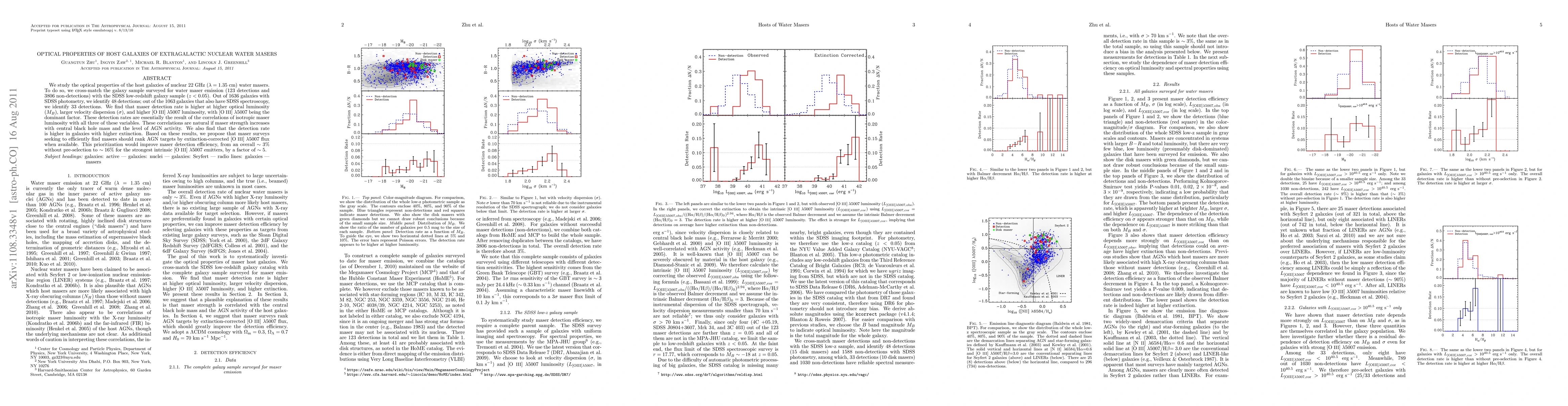 A study found that nuclear water masers are more likely to occur in galaxies with high optical luminosity, large velocity dispersion, and high extinction levels. This suggests that targeting AGN sources by extinction-corrected [OIII]5007 flux can improve maser detection efficiency.