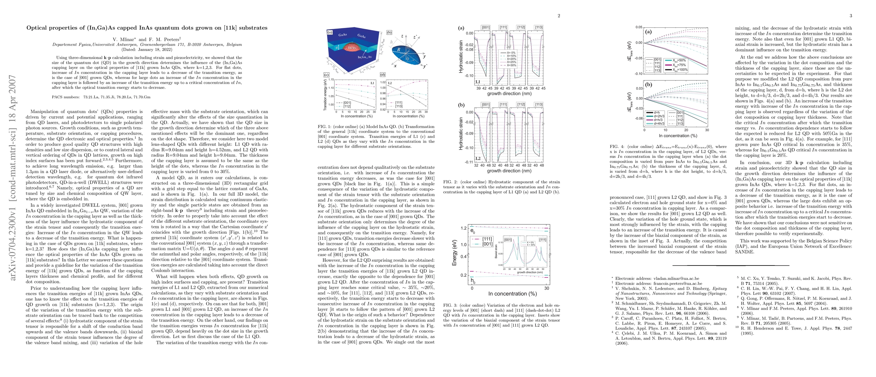 This study reveals that the optical properties of (In,Ga)As capped InAs quantum dots on [11k] substrates are significantly influenced by the quantum dot size and the In concentration in the capping layer. The transition energy decreases with higher In concentration for flat dots but increases up to a critical In concentration before decreasing again for larger dots.