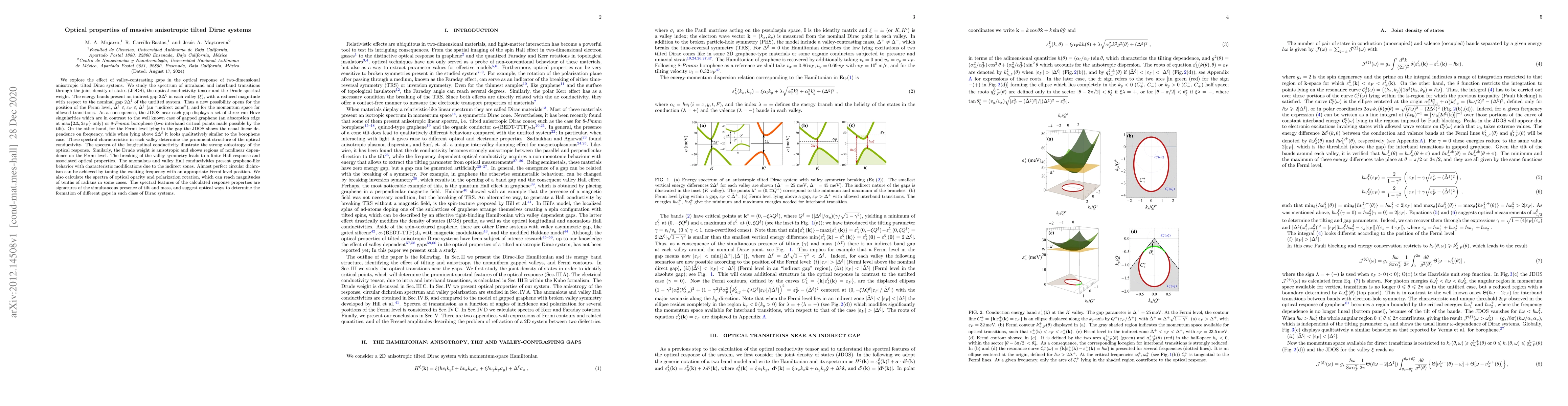 Researchers studied the optical properties of massive anisotropic tilted Dirac systems, finding a new way to position the Fermi level and allowing for circular dichroism, and demonstrating strong anisotropy in their response.