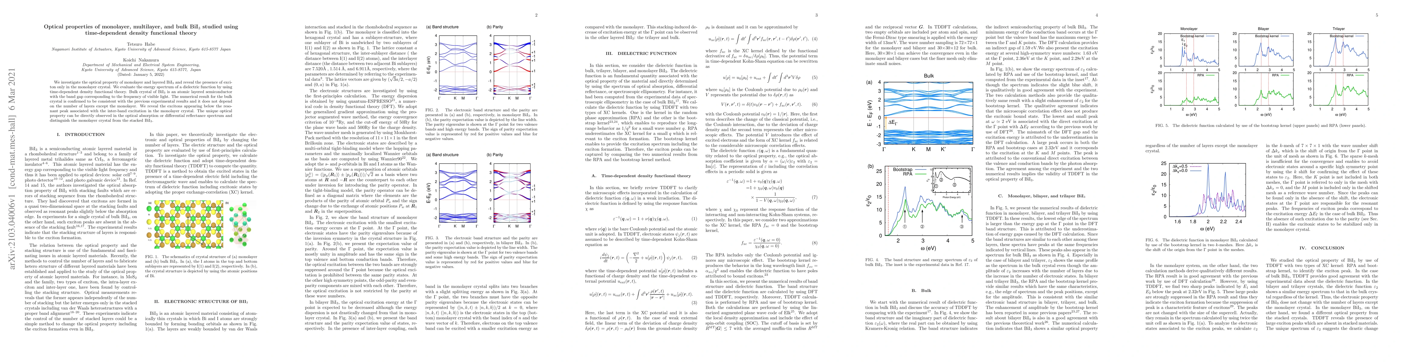 Researchers used time-dependent density functional theory to study BiI$_3$ crystals, finding excitons only in monolayer crystals and unique optical properties distinguishable from stacked crystals.