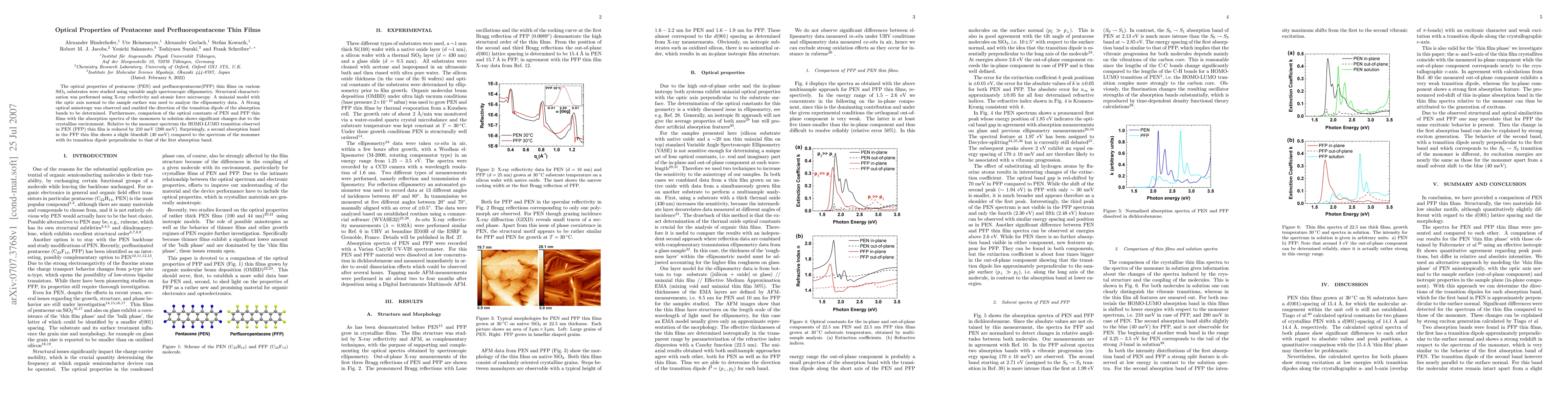 This study investigates the optical anisotropy and electronic properties of pentacene and perfluoropentacene thin films using spectroscopic ellipsometry and structural analysis. Significant differences in HOMO-LUMO transitions and a second absorption band blueshift were observed, indicating substantial changes in the crystalline environment.