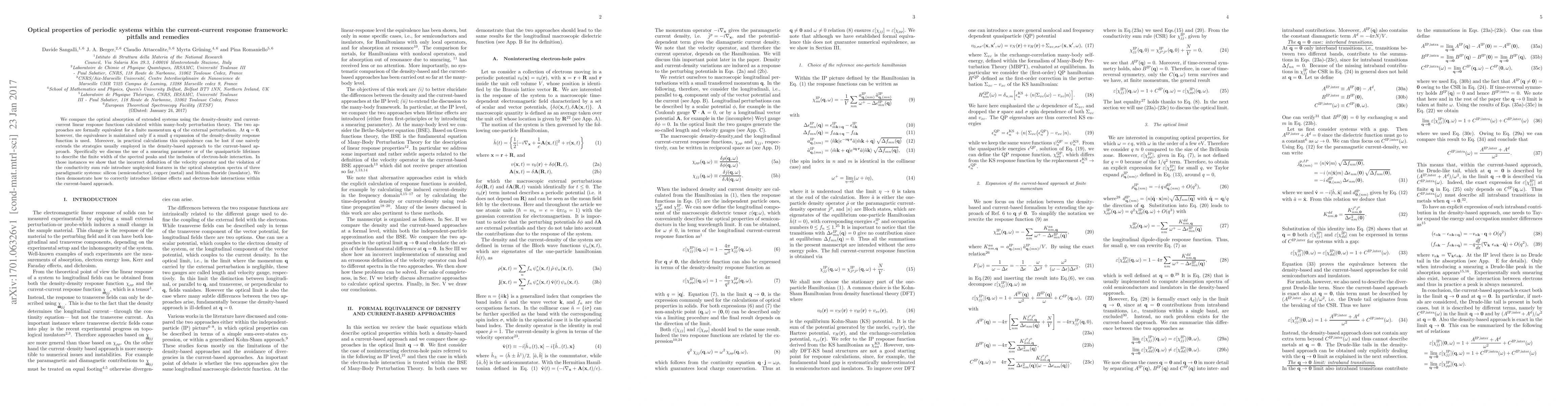 Researchers investigated the optical properties of periodic systems using two approaches: density-density and current-current linear response functions. They found that a small q expansion is necessary for equivalence at q=0 and highlighted incorrect definitions and violations in the conductivity sum rule as leading to unphysical features in optical absorption spectra.