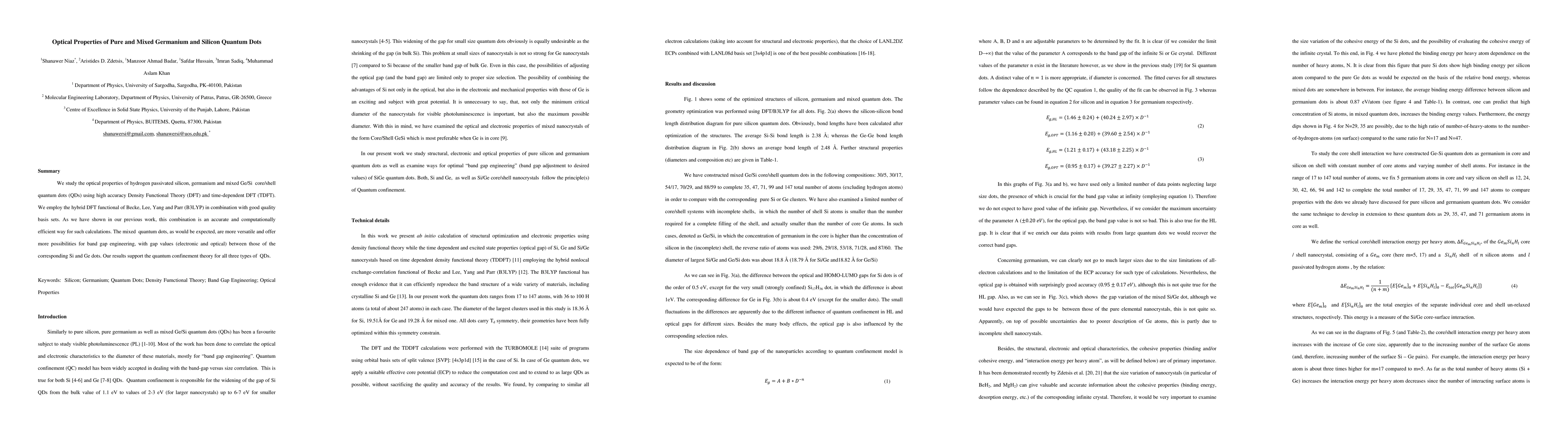 This study investigates the optical properties of hydrogen-passivated silicon, germanium, and mixed Ge/Si core/shell quantum dots using Density Functional Theory. The mixed quantum dots exhibit versatile band gap engineering, offering optical properties between those of pure Si and Ge dots, supporting quantum confinement theory.