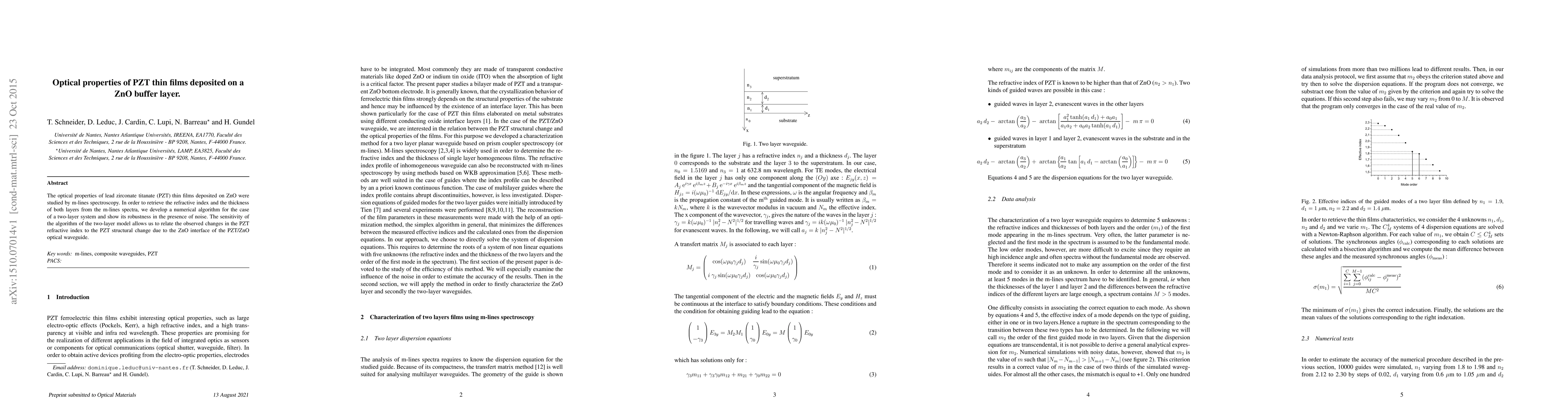 The paper investigates the optical properties of PZT thin films on ZnO buffers using m-lines spectroscopy, developing a robust numerical algorithm to determine refractive indices and thickness. The algorithm reveals changes in PZT refractive index linked to structural modifications due to ZnO interface effects.