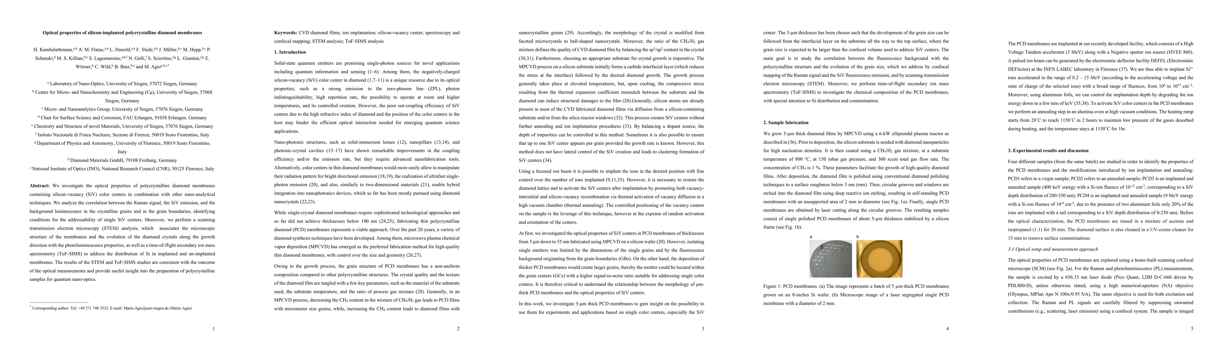 Researchers investigated the optical properties of silicon-implanted polycrystalline diamond membranes, discovering correlations between Raman signals, SiV emission, and photoluminescence. The study provides insights into the preparation of samples for quantum nano-optics.