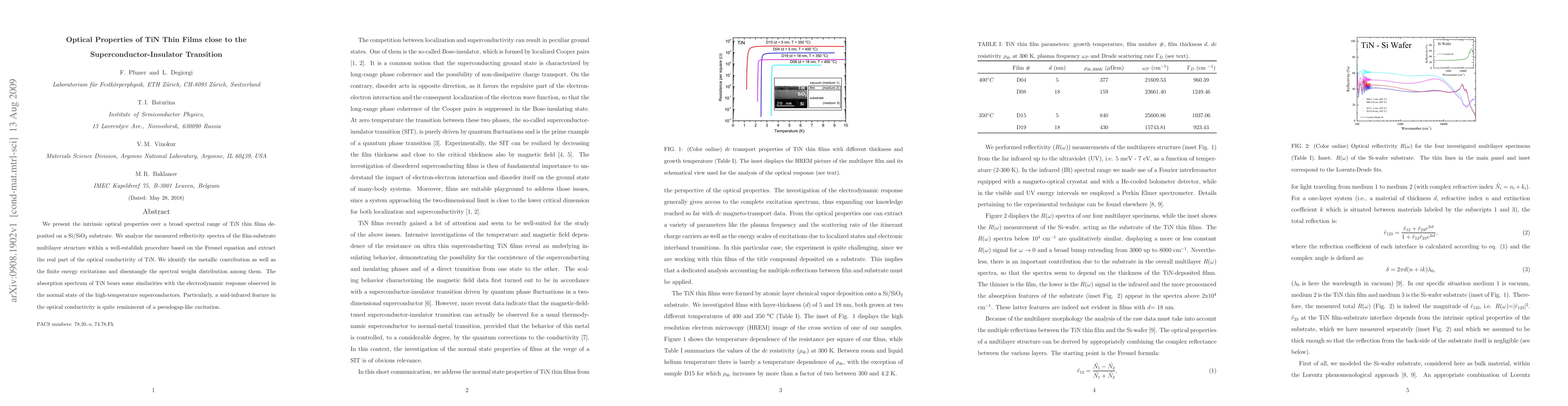 Researchers investigated the optical properties of TiN thin films near a superconductor-insulator transition, finding similarities with high-temperature superconductors' normal state response and a pseudogap-like excitation in their absorption spectrum.