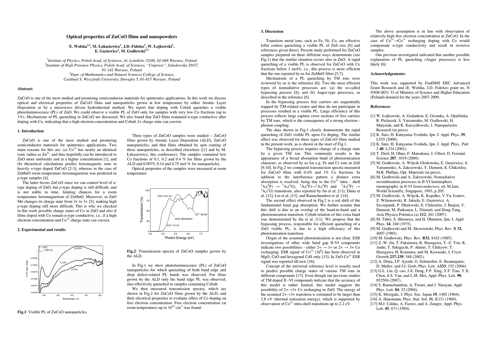 This study investigates the optical and electrical properties of ZnCoO films and nanoparticles, finding that cobalt doping quenches ZnO's visible photoluminescence, except at low cobalt fractions. The n-type conductivity of ZnO films persists after doping, suggesting coexistence of high electron concentration and Cobalt 2+ charge state.
