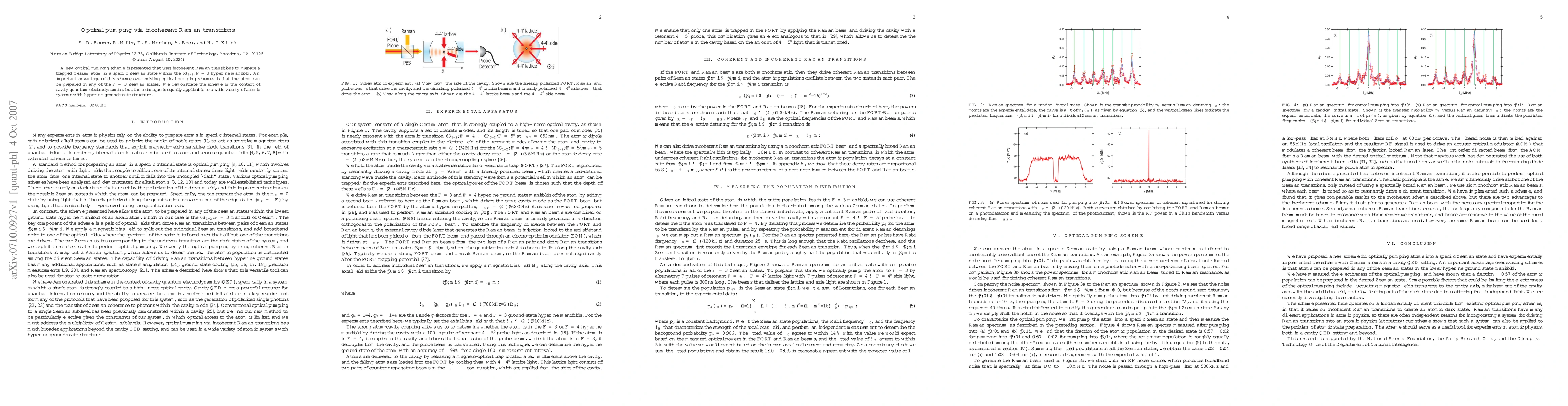 A new optical pumping scheme is presented that uses incoherent Raman transitions to prepare a trapped Cesium atom in a specific Zeeman state within the 6S_{1/2}, F=3 hyperfine manifold. An important advantage of this scheme over existing optical pumping schemes is that the atom can be prepared in any of the F=3 Zeeman states. We demonstrate the scheme in the context of cavity quantum electrodynamics, but the technique is equally applicable to a wide variety of atomic systems with hyperfine ground-state structure.