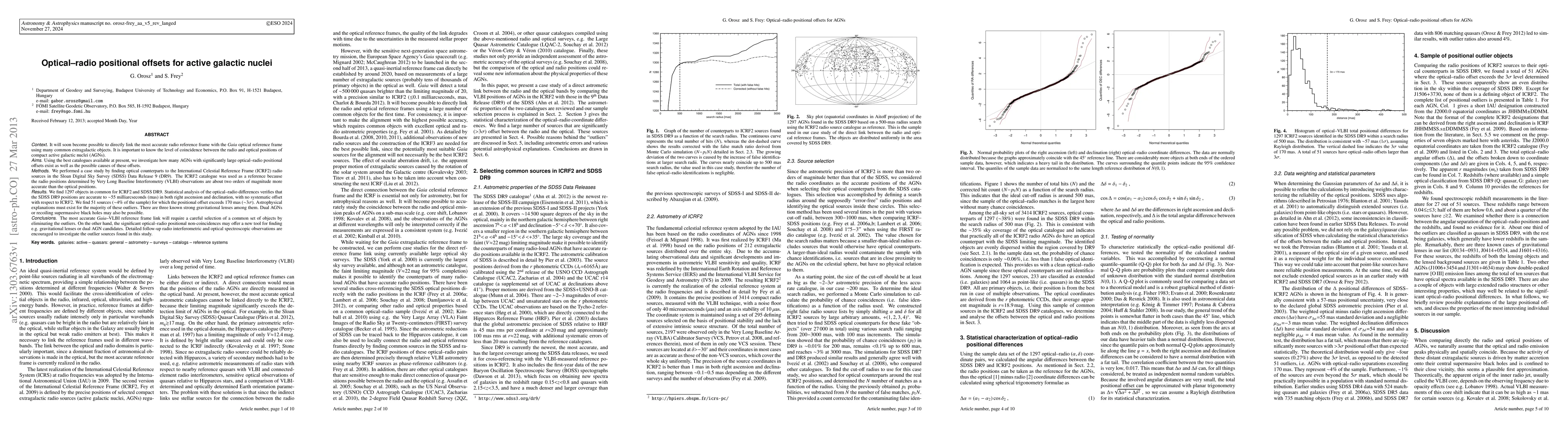 A study found 51 active galactic nuclei (AGN) with positional offsets exceeding 170 mas between optical and radio positions, suggesting astrophysical explanations such as gravitational lenses or dual AGN.