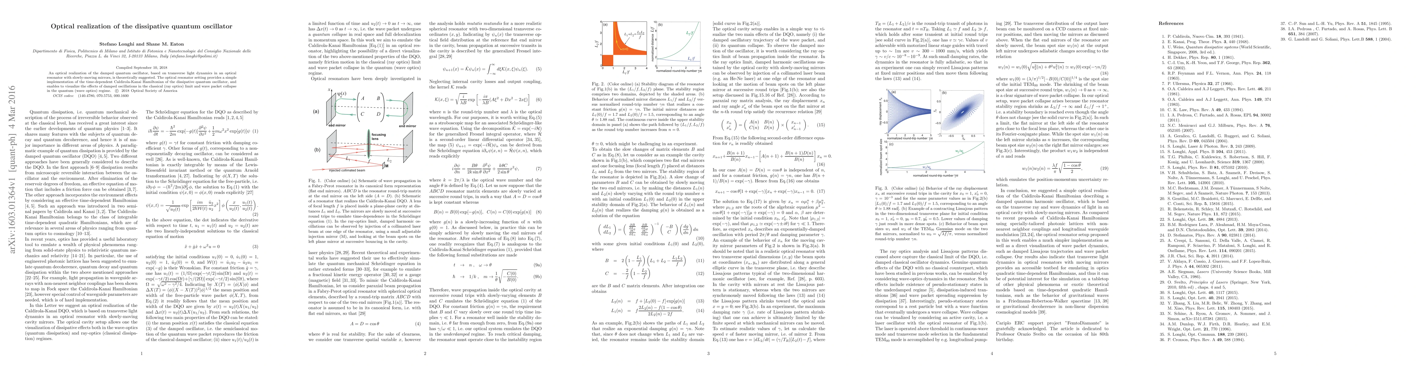 This paper proposes an optical setup using an optical resonator with slowly-moving mirrors to simulate a dissipative quantum oscillator. The setup visualizes damped oscillations in the classical limit and wave packet collapse in the quantum regime.