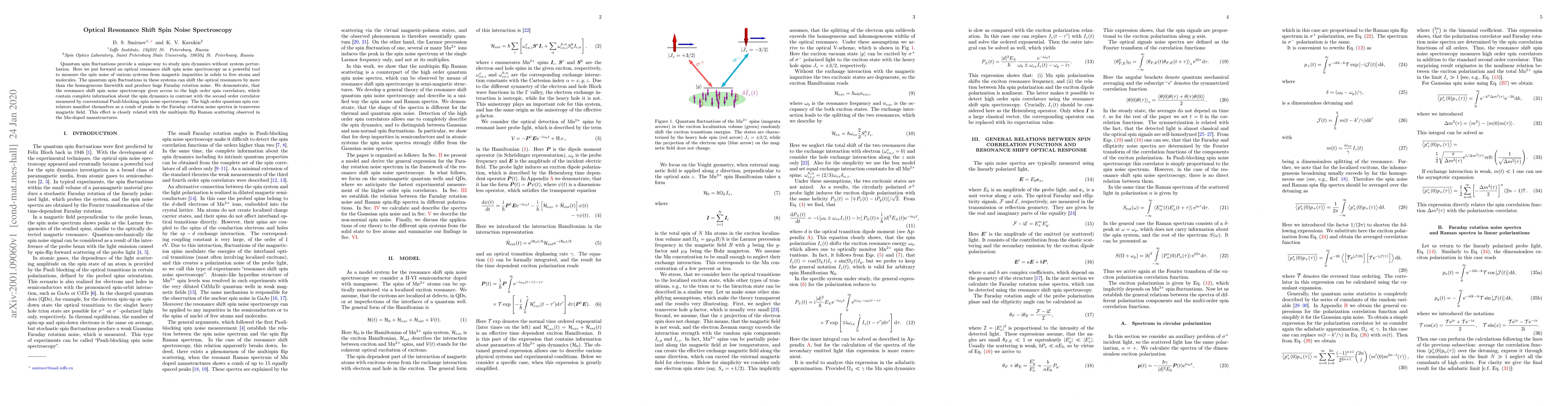 This paper introduces optical resonance shift spin noise spectroscopy as a novel method to measure spin noise in quantum systems, providing access to high-order spin correlators for detailed spin dynamics analysis, unlike conventional techniques. The method reveals a comb of peaks in Faraday rotation noise spectra, linked to multispin flip Raman scattering.