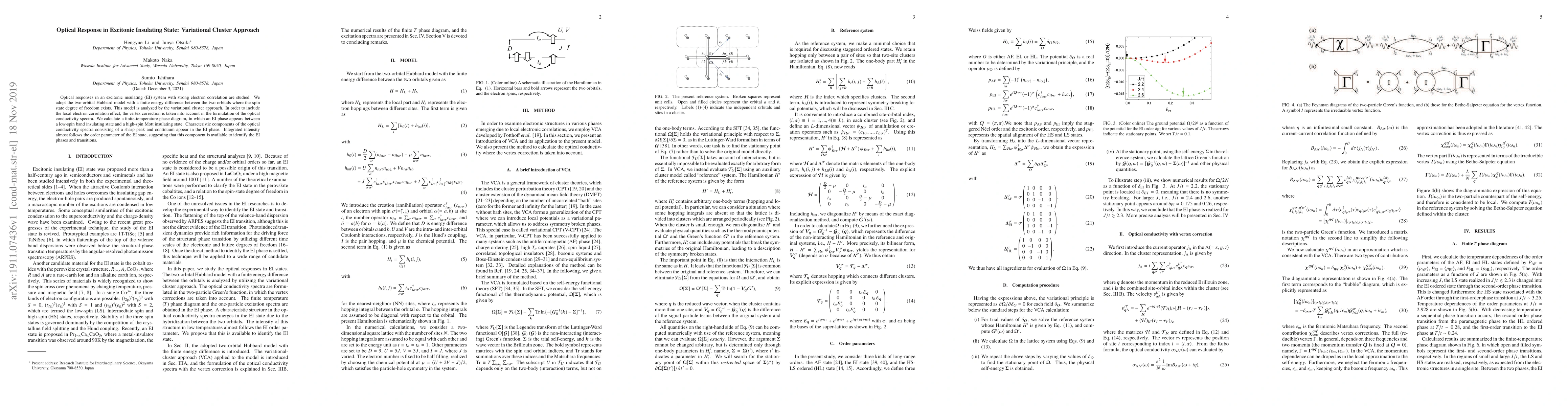 This paper investigates optical responses in excitonic insulating systems using the variational cluster approach and the two-orbital Hubbard model. It reveals characteristic optical conductivity spectra with a sharp peak and continuum in the EI phase, which correlates with the EI state's order parameter, aiding in identifying EI phases and transitions.