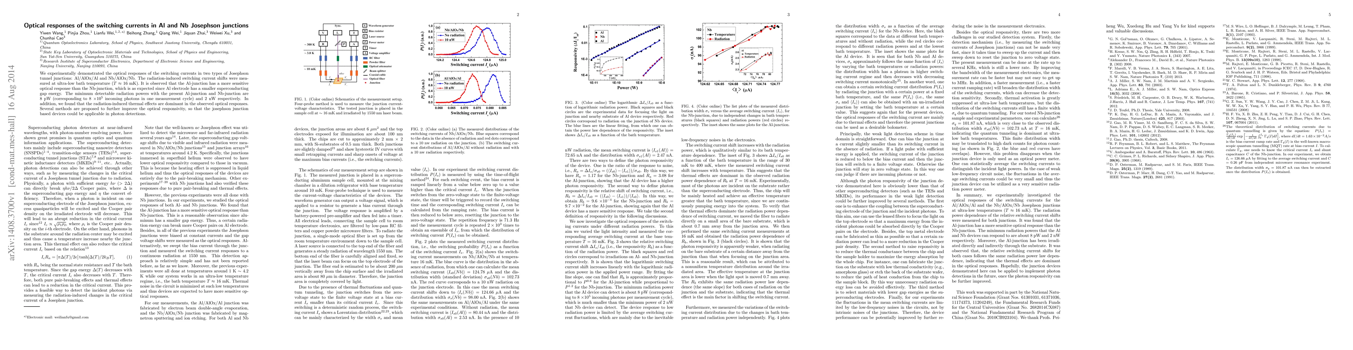 This paper demonstrates the optical responses of switching currents in Al and Nb Josephson junctions, showing that Al-junctions are more sensitive due to a smaller superconducting gap. The minimum detectable radiation powers are 8 pW for Al and 2 nW for Nb, highlighting the potential for these junctions in photon detection applications.