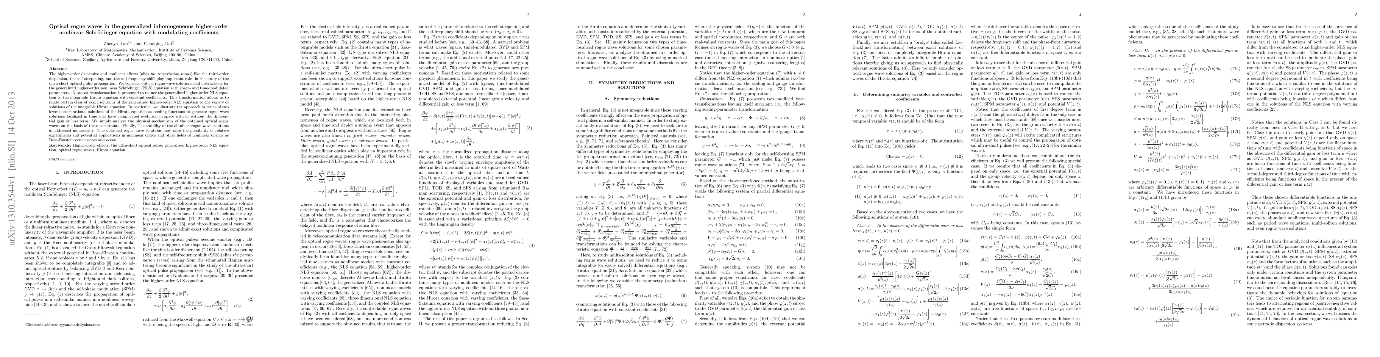 This paper investigates optical rogue wave solutions in the generalized higher-order nonlinear Schrödinger equation with modulating coefficients, demonstrating their generation and stability. The study uses a transformation to relate these solutions to the integrable Hirota equation, highlighting potential applications in nonlinear optics and related fields.