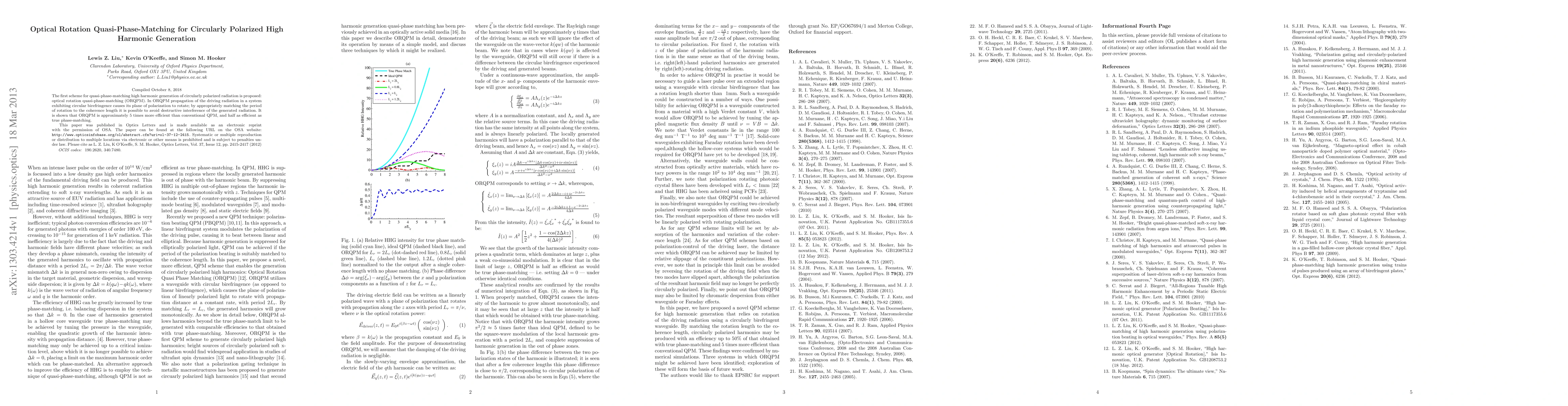 Summary: Optical Rotation Quasi-Phase-Matching (ORQPM) is proposed to enhance high harmonic generation of circularly polarized radiation, offering about 5 times the efficiency of conventional quasi-phase-matching and half the efficiency of true phase-matching by leveraging circular birefringence.