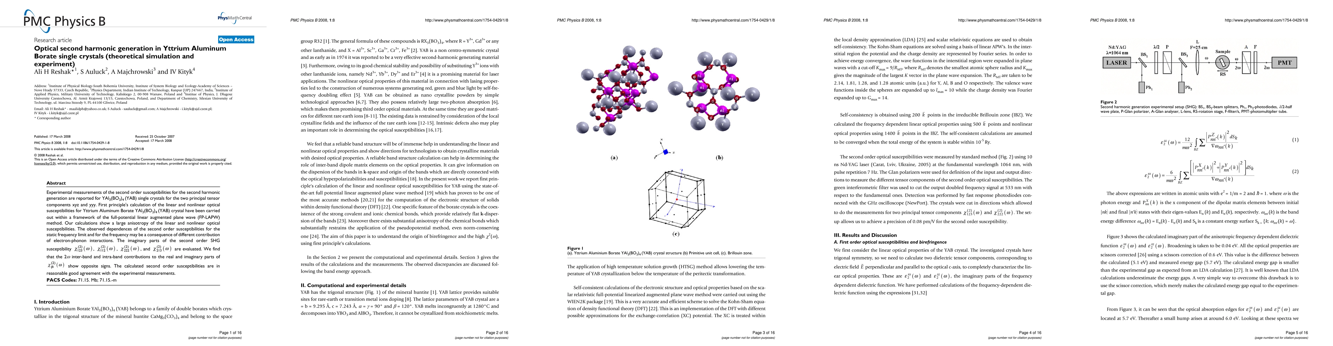 Researchers studied Yttrium Aluminum Borate crystals using theoretical simulation and experiment to understand second harmonic generation, finding a large anisotropy in optical susceptibilities with mixed electron-phonon interactions.