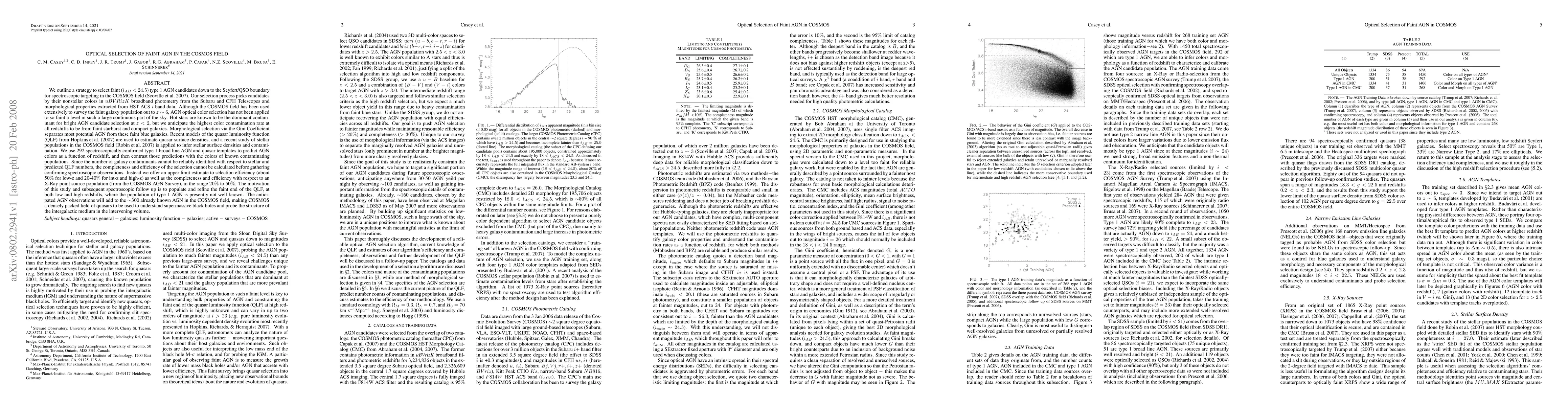 We outline a strategy to select faint (i<24.5) type 1 AGN candidates down to the Seyfert/QSO boundary for spectroscopic targeting in the COSMOS field, picking candidates by their nonstellar colors in broadband ground-based photometry and morphological properties extracted from HST-ACS. AGN optical color selection has not been applied to such faint magnitudes in such a large continuous part of the sky. Hot stars are known to be the dominant contaminant for bright AGN candidate selection at z<2, but we anticipate the highest color contamination at all redshifts to be from faint starburst and compact galaxies. Morphological selection via the Gini Coefficient separates most potential AGN from these faint blue galaxies. Recent models of the quasar luminosity function are used to estimate quasar surface densities, and studies of stellar populations in the COSMOS field infer stellar contamination. We use 292 spectroscopically confirmed type 1 AGN and quasar templates to predict AGN colors with redshift, and contrast those predictions with the colors of known contaminating populations. The motivation of this study and subsequent spectroscopic follow-up is to populate and refine the faint end of the QLF where the population of type 1 AGN is presently not well known. The anticipated AGN observations will add to the ~300 already known AGN in the COSMOS field, making COSMOS a densely packed field of quasars to be used to understand supermassive black holes and probe the structure of the intergalactic medium in the intervening volume.